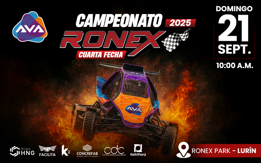 Prepárate para la adrenalina del Campeonato Nacional RONEX 2025. Este campeonato nacional reúne a los mejores pilotos de crosscars, motos y cuatrimotos en el Ronex Park de Lurín.